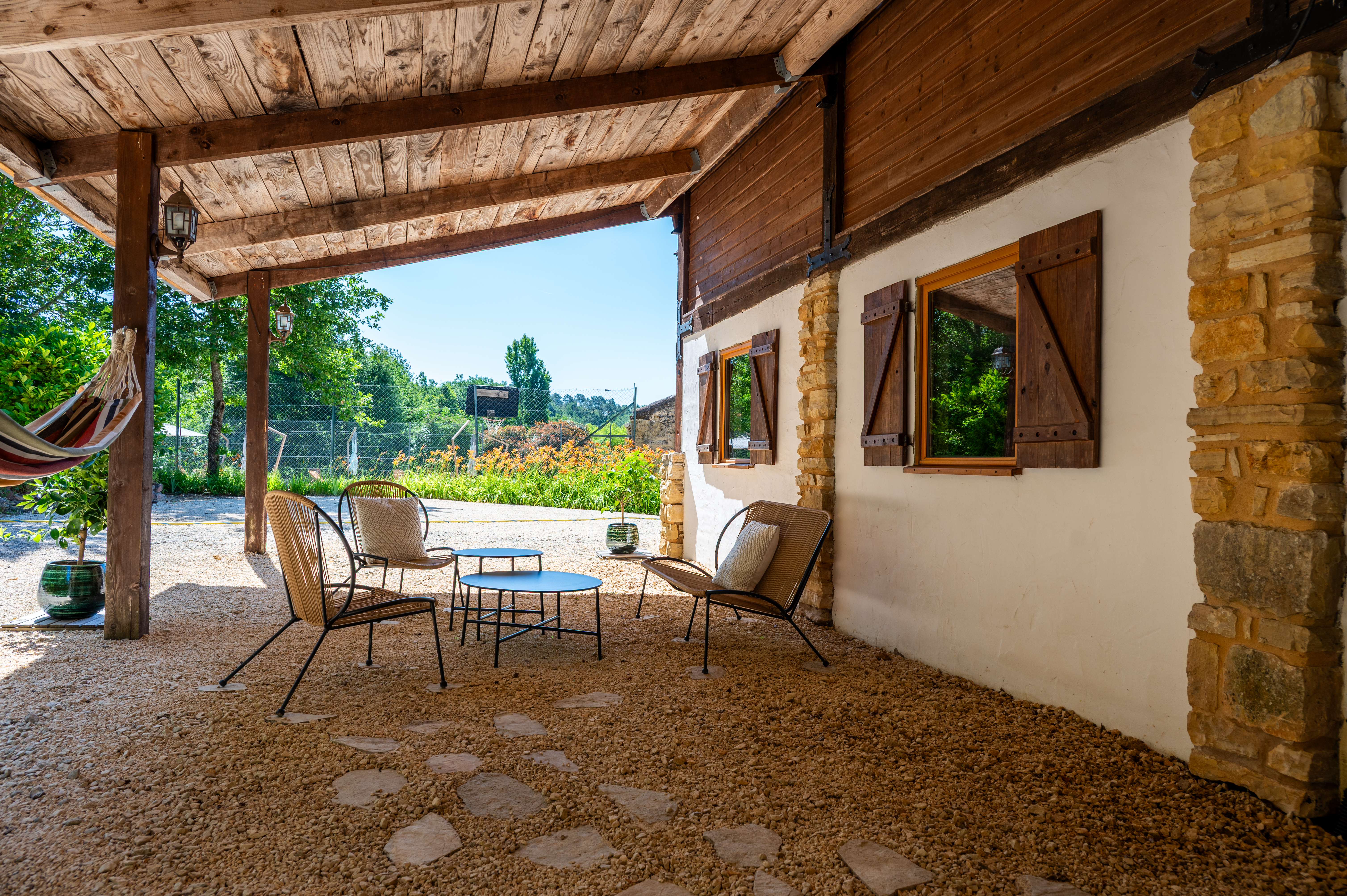 À l'extérieur, profitez de votre terrasse privée avec jardin et d'un barbecue pour des repas en plein air. Un petit-déjeuner facultatif et un service de boulangerie sont proposés. Profitez des installations communes : piscine chauffée, court de tennis, et local de jeux (ping-pong, billard, fléchettes). La propriété est entourée de forêts et de jardins, offrant tranquillité et nature.